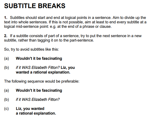 As a general rule for closed captioning, the text should be large enough for viewers to read and text content should not exceed 32-36 characters per line. There are addition specification for font type, size, and background color that all serve to increase the readability of captions across multiple display types.These guidelines not only applies to traditional display media, like television and film, but can also apply to games when making captioning for spoken dialogue.